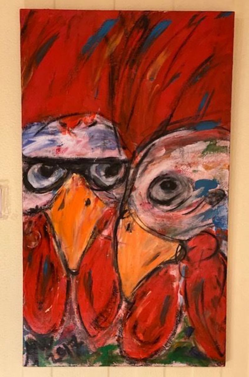 2 hanen, schilderij van Niels van der Reijden 2 hanen, schilderij van Niels van der Reijden