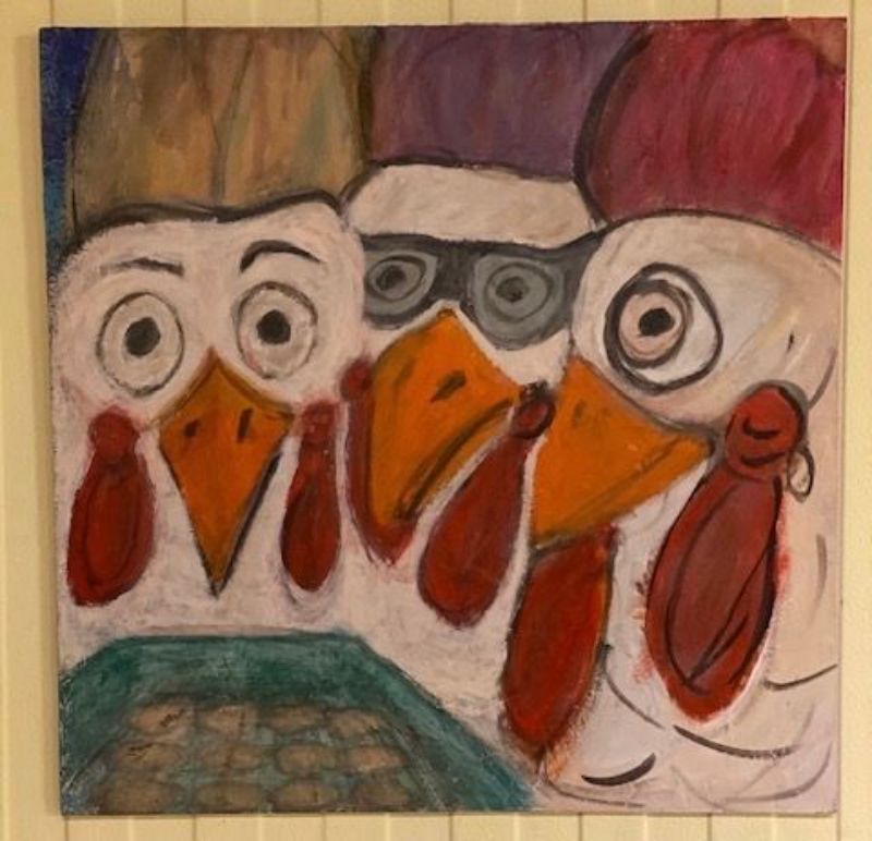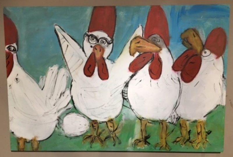 Kippen op paneel (acryl) 67 x 48 cm. Kippen op paneel (acryl) 67 x 48 cm. -