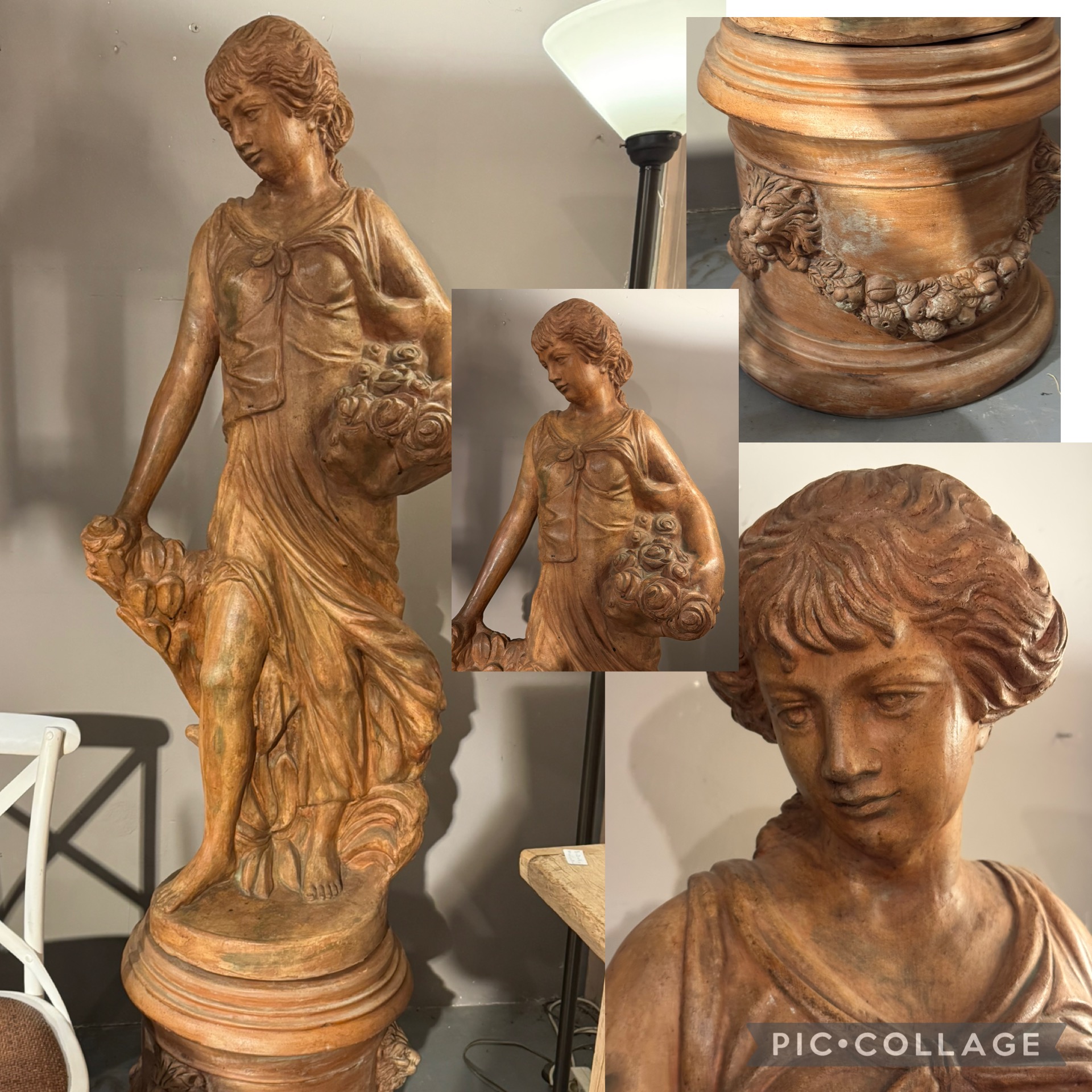 Groot Terracotta beeld op sokkel. Hoogte 192 cm. Zeer gedetailleerd en gaaf beeld uit Italië. van € 3950 nu € 1950 .- Groot Terracotta beeld op sokkel. Hoogte 192 cm. Zeer gedetailleerd en gaaf beeld uit Italië. van € 3950 nu € 1950 .-