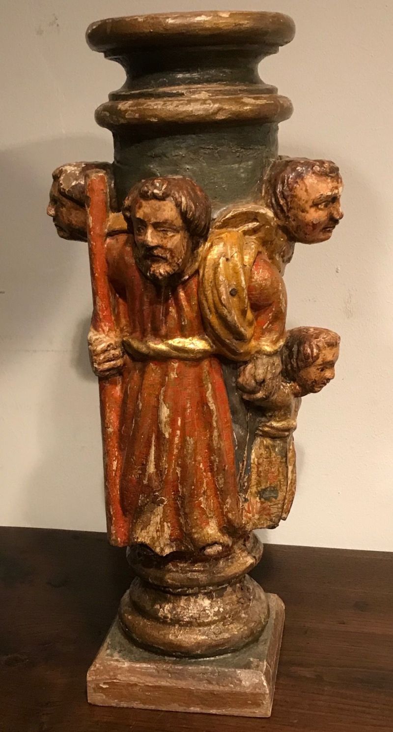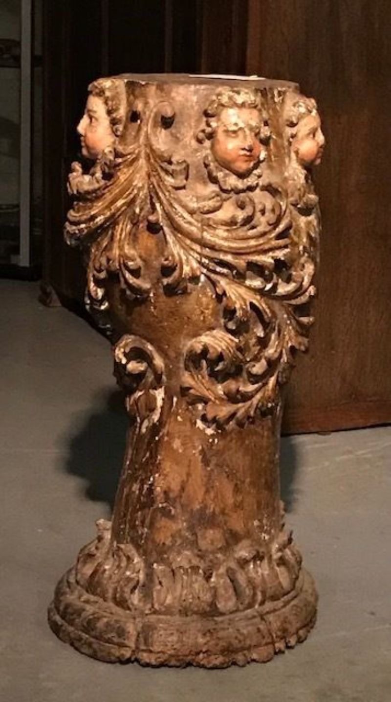 Console met 4 hoofdjes van engeltjes. Spanje 17e eeuw. Hoogte 71 cm. Console met 4 hoofdjes van engeltjes. Spanje 17e eeuw. Hoogte 71 cm. -