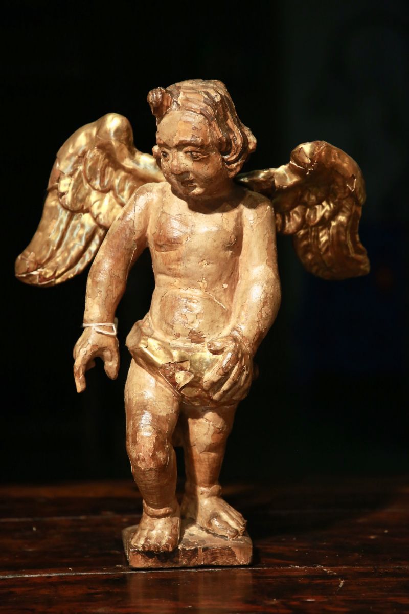 Engel 18e eeuw. Polychroom met bladgoud op de vleugels. Duitsland ? 31 cm. Engel 18e eeuw. Polychroom met bladgoud op de vleugels. Duitsland ? 31 cm. -