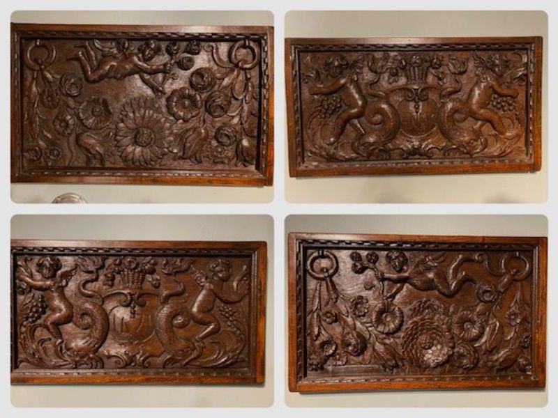 Antieke houten panelen van een Hollandse kast anno 1671 (set van 4) 2 stuks; B x H 48 x 29 cm en 2 stuks 47 x 25 cm Antieke houten panelen van een Hollandse kast anno 1671 (set van 4) 2 stuks; B x H 48 x 29 cm en 2 stuks 47 x 25 cm -