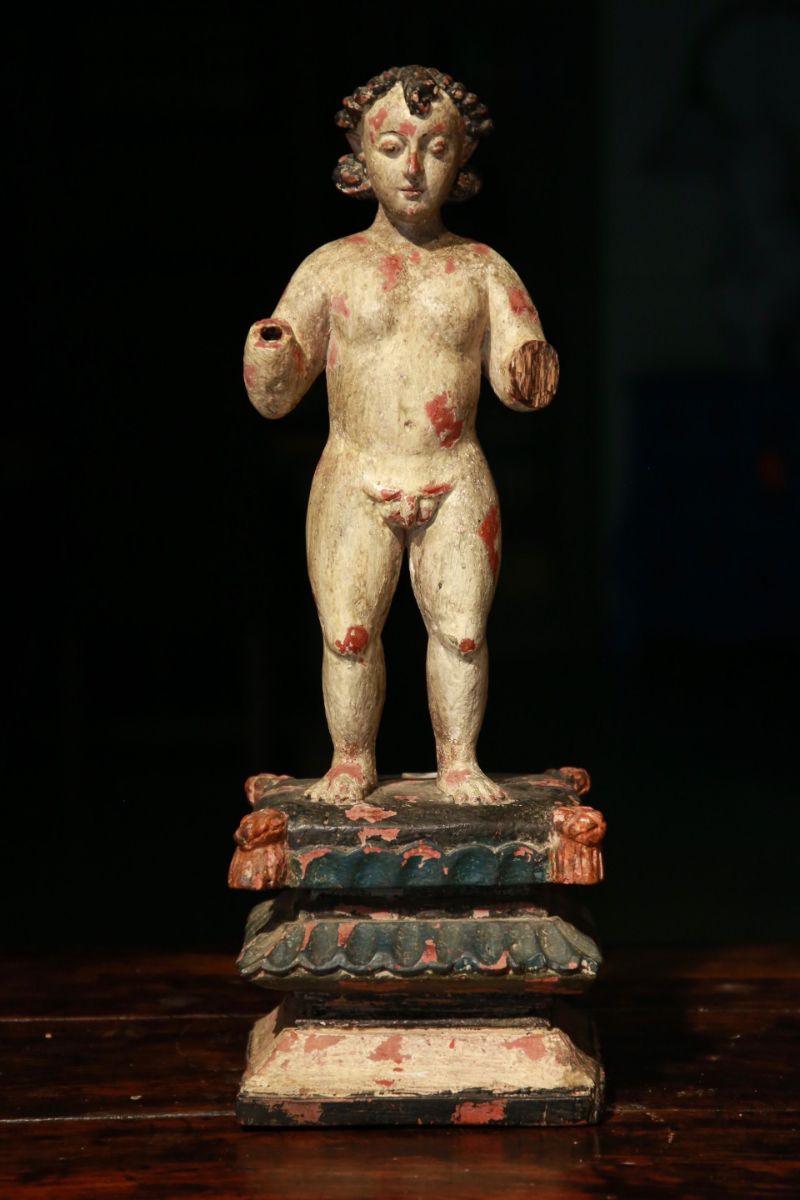 Santo Nino. 1e eeuw Filipijnen. houten beeld met polychroom, hoogte 32 cm. Santo Nino. 1e eeuw Filipijnen. houten beeld met polychroom, hoogte 32 cm. -