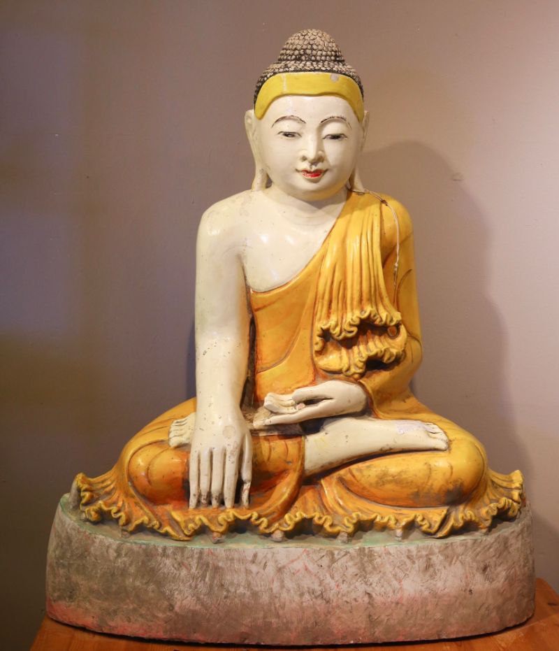 Grote oude Buddha van marmer uit Birma. 110 cm hoog. Zeer bijzonder en decoratief! Grote oude Buddha van marmer uit Birma. 110 cm hoog. Zeer bijzonder en decoratief! -